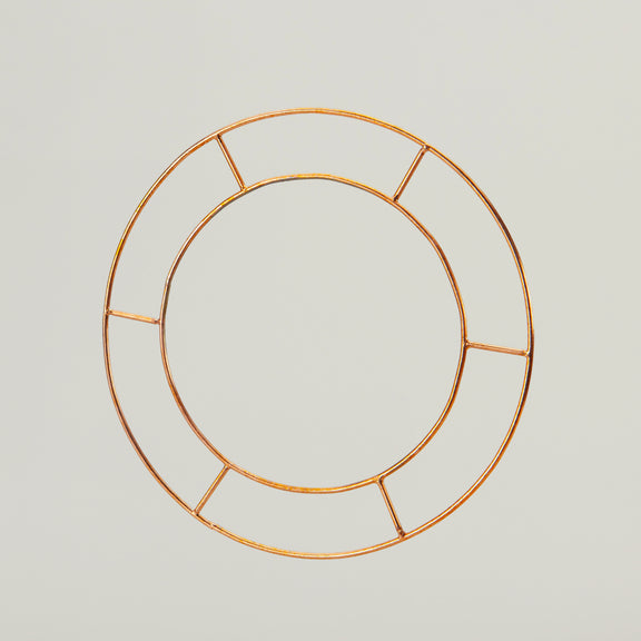 A modern, double-hoop wreath form crafted from solid copper. Designed to be beautiful on its own or fully decorated, it offers a versatile base for seasonal and floral arrangements. Durable, reusable, and built to last for years of creative styling.